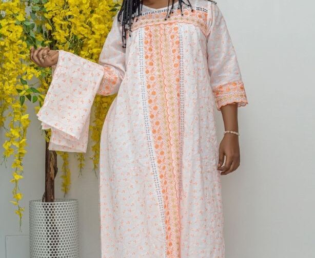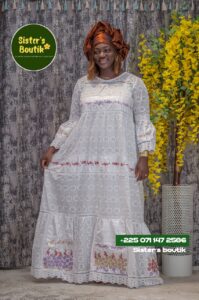 Robe en broderie anglaise – Élégance et authenticité africaine